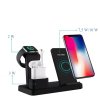 Bezdrôtová nabíjacia stanica 3 v 1 s podporou rýchleho nabíjania, určená na bezdrôtové nabíjanie mobilného telefónu, hodiniek a slúchadiel, vstup USB-C, 3 výstupy (15 W, 3 W a 2 W), ochrana proti podpätiu a prepätiu, čierny dizajn.
