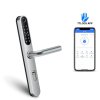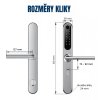 Bluetooth / WiFi inteligentná kľučka, vhodná pre interiérové aj exteriérové použitie, ovládanie cez aplikáciu TTlock, 5 možností odomykania (kľúč, odtlačok prsta, číselný kód, čipová karta, mobilný telefón), variabilné nastavenie rozteče 4 -75 mm, možnosť pravej aj ľavej orientácie, napájanie batériami 4ks AA, strieborná
