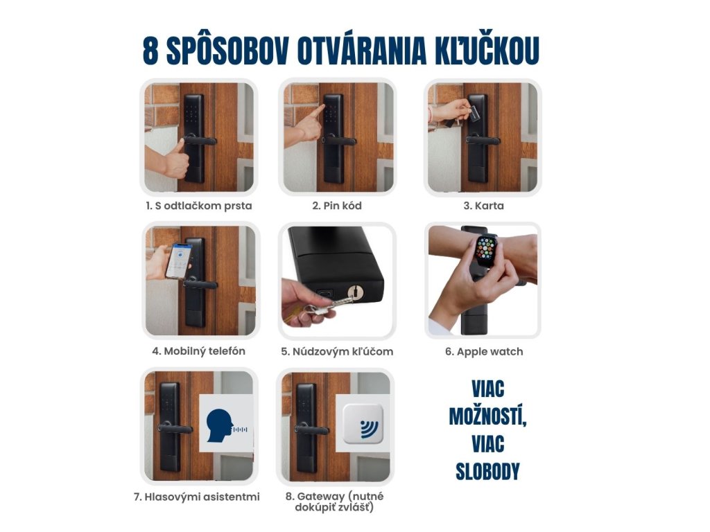 Možnosť odomknutia/zamknutia: | núdzový kľúč, odtlačok prsta, PIN, karta, mobilným telefónom |