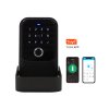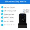 Inteligentná schránka na kľúče, Bluetooth, napájanie z batérie, čítačka odtlačkov prstov, odomykanie kartou, pinom alebo telefónom, offline prevádzka, zaznamenávanie príchodov a odchodov, ovládanie cez aplikáciu Tuya Smart alebo Smart Life, čierna farba.