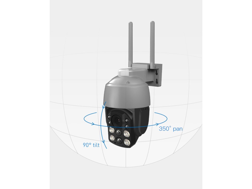 - Ovládanie natočenia kamery: Kamera podporuje horizontálne otáčanie v rozsahu 0°-350° a vertikálne otáčanie v rozsahu 0°-90°. Pomocou tejto funkcie môžete ľahko ovládať pohľad kamery tak, aby pokrývala čo najväčšiu plochu.