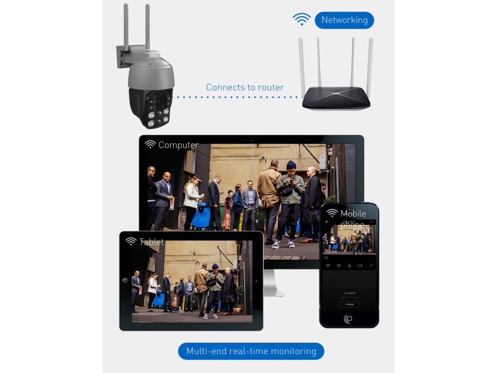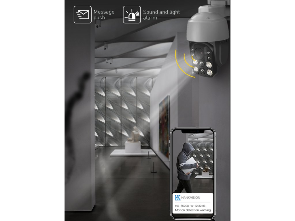 - Obojstranná komunikácia: Vďaka zabudovanému mikrofónu a reproduktoru môžete nielen sledovať, ale aj komunikovať s osobami v dosahu kamery. Táto funkcia je ideálna napríklad na komunikáciu s návštevníkmi alebo varovanie potenciálnych nepozvaných hostí.