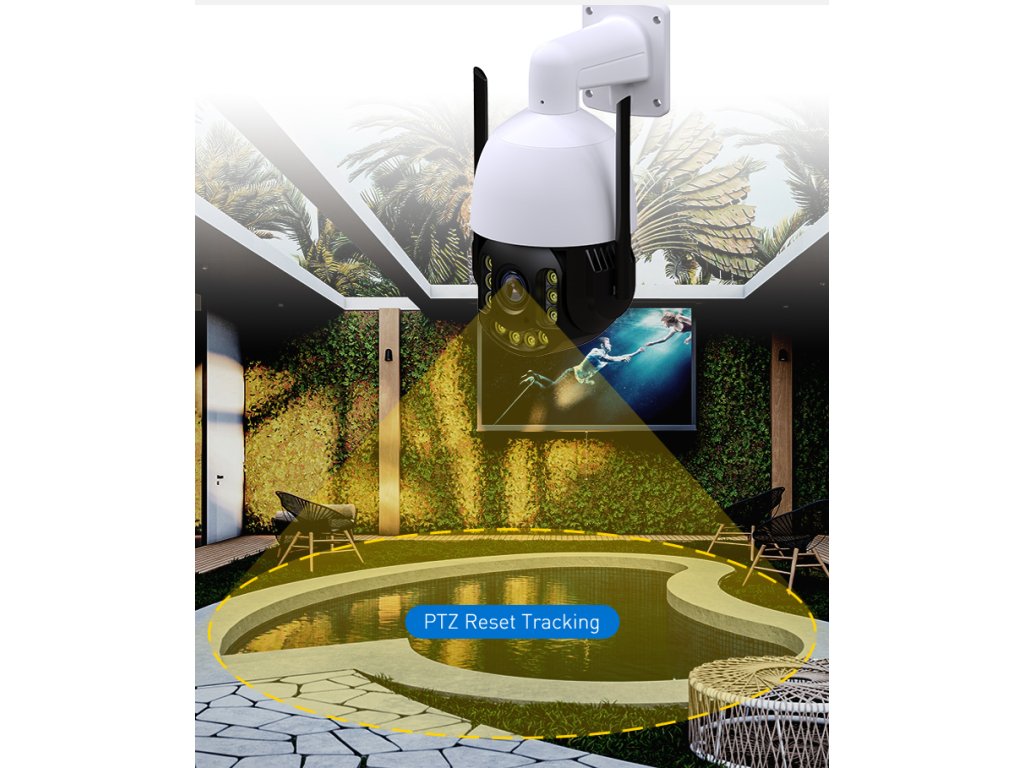 - PTZ funkcie: Kamera podporuje funkciu PTZ (Pan, Tilt, Zoom), ktorá umožňuje diaľkovo ovládať otáčanie a priblíženie kamery na ešte bližšie sledovanie.