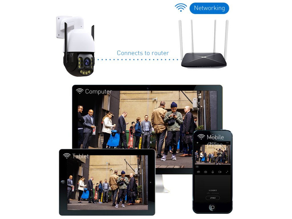 - Ovládanie natočenia kamery: Kamera podporuje horizontálne otáčanie v rozsahu 0°-360° a vertikálne otáčanie v rozsahu 0°-90°. Pomocou tejto funkcie môžete ľahko ovládať pohľad kamery tak, aby pokrývala čo najväčšiu plochu.