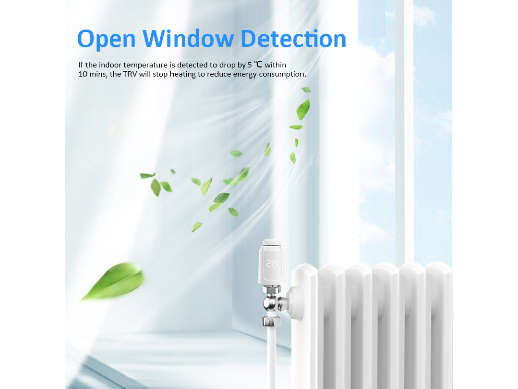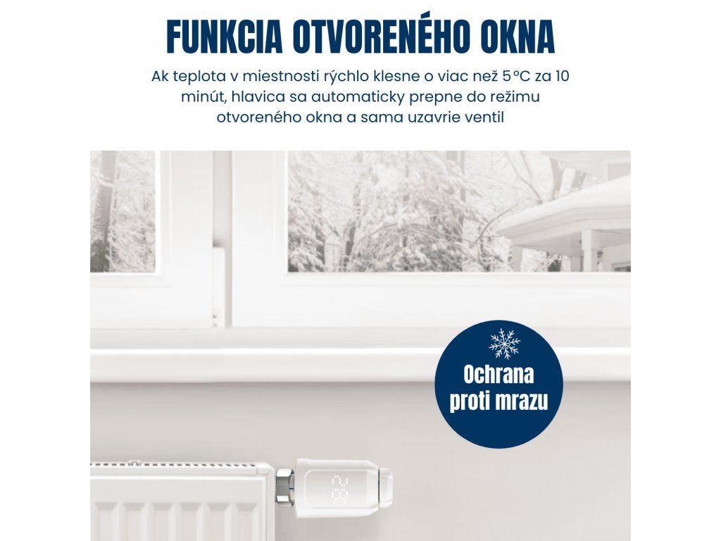 Hlavica nemá samostatné čidlo okna. Funguje na princípe rýchleho poklesu teploty: