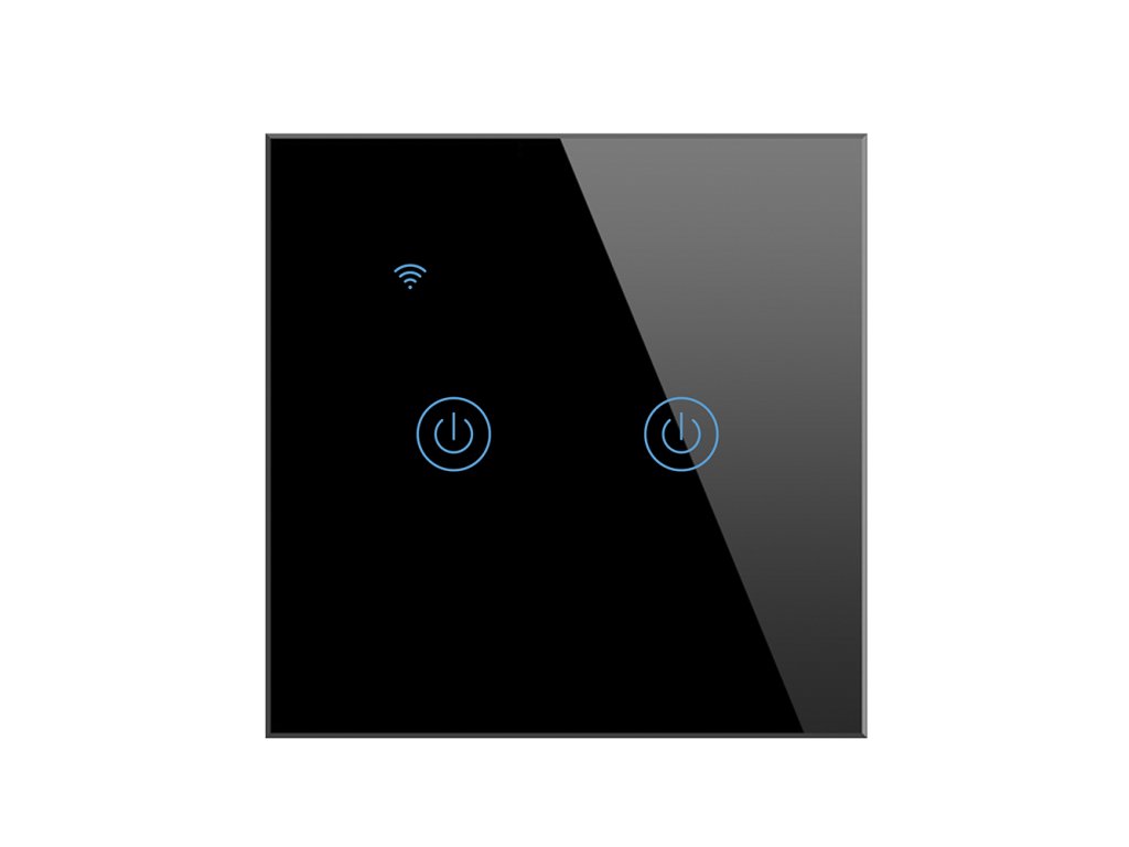 Spínač WIFI na osvetlenie a elektroinštaláciu, dve tlačidlá, pripojenie WIFI, napájanie zo siete, kompatibilný s Google Assistant a Amazon Alexa, aplikácia Tuya Smart Life pre Android/iOS, čierna