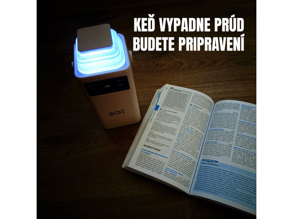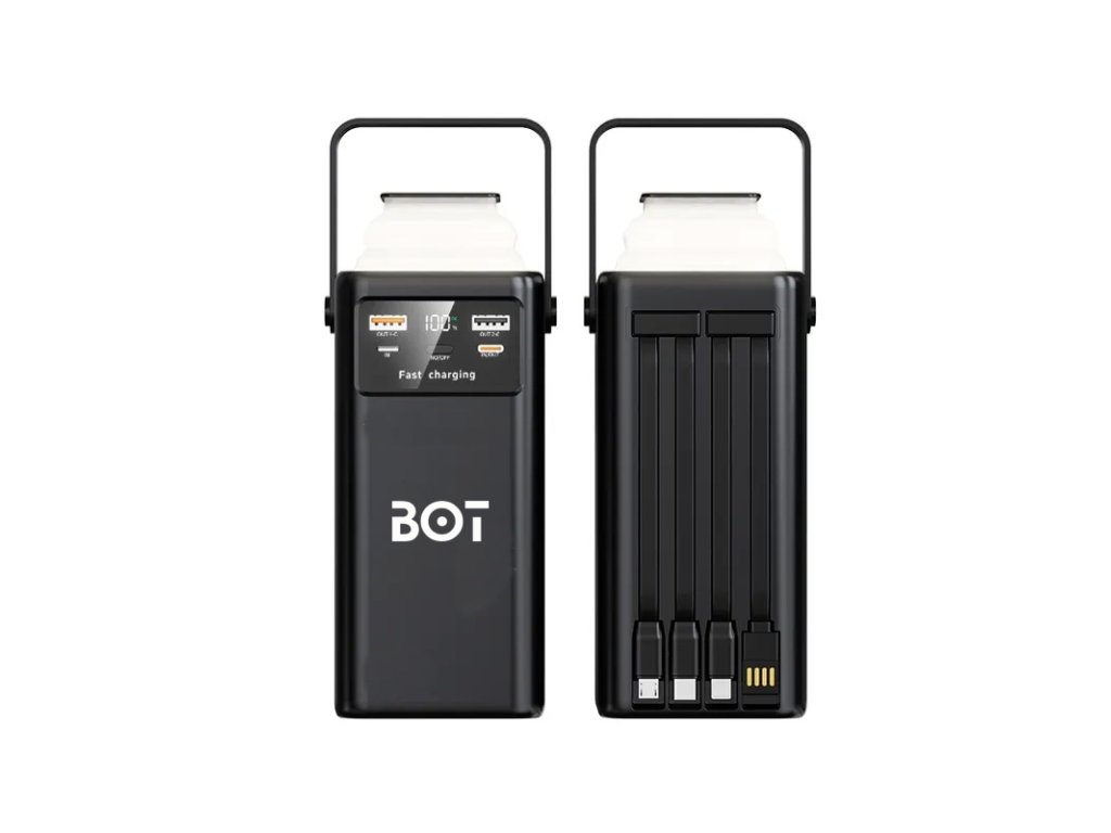 BOT powerbanka 50 000 mAh je výkonná, kompaktná a spoľahlivý. Perfektne poslúži na cestách, výletoch, v práci aj doma. So zabudovanými káblami, LED svietidlom a presným displejom sa stáva neoceniteľným pomocníkom v každej situácii.
