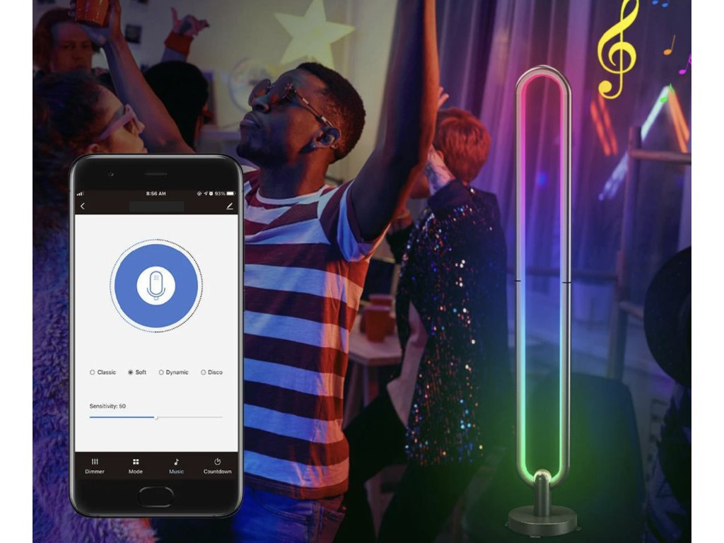 Mikrofón zabudovaný v lampe umožňuje synchronizovať svetlo s hudobným rytmom alebo okolitým zvukom, čo z nej robí dokonalý doplnok na každú párty alebo hudobnú párty. Táto inteligentná lampa podporuje aj diaľkové ovládanie a ovládanie pomocou mobilnej aplikácie Smart Life, takže si môžete nastaviť parametre jasu, farby, efektu a rýchlosti podľa svojich potrieb a preferencií.