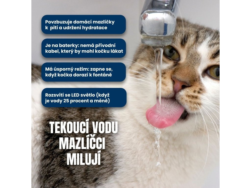 ✔ Úsporný senzorový režim – aktivuje fontánu pri priblížení mačky