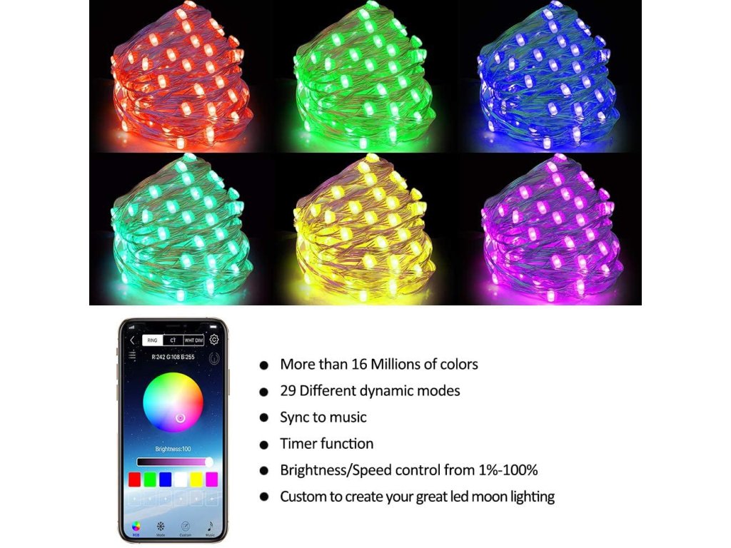 Dôležitou funkciou, ktorú určite ocenia najmä návštevníci párty, je bezdrôtové pripojenie mobilného telefónu k LED pásu a synchronizácia hudby s farbami LED. Preto je možné nastaviť zmenu farby v závislosti od úderov prehrávanej hudby. Prístup k ovládaniu je možné zdieľať, takže nie je potrebné bojovať o ovládanie z jedného telefónu. Zábavná LED reťaz ponúka na výber až 16 miliónov rôznych farieb.