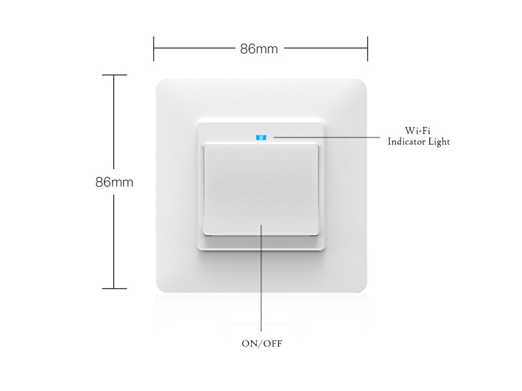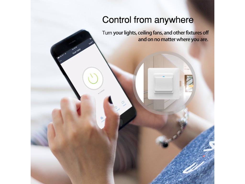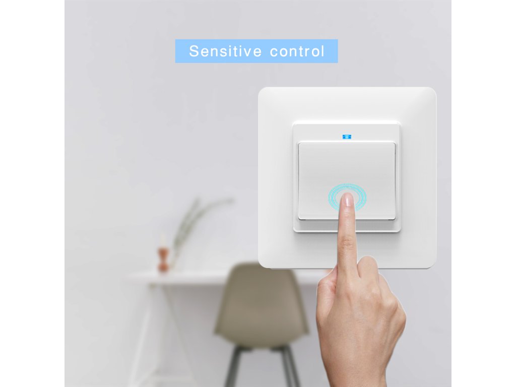 Vypínač WIFI na osvetlenie a elektroinštaláciu, jedno tlačidlo, pripojenie WIFI, napájanie zo siete, kompatibilný s Google Assistant a Amazon Alexa, aplikácia pre Android/iOS Tuya Smart Life, biela
