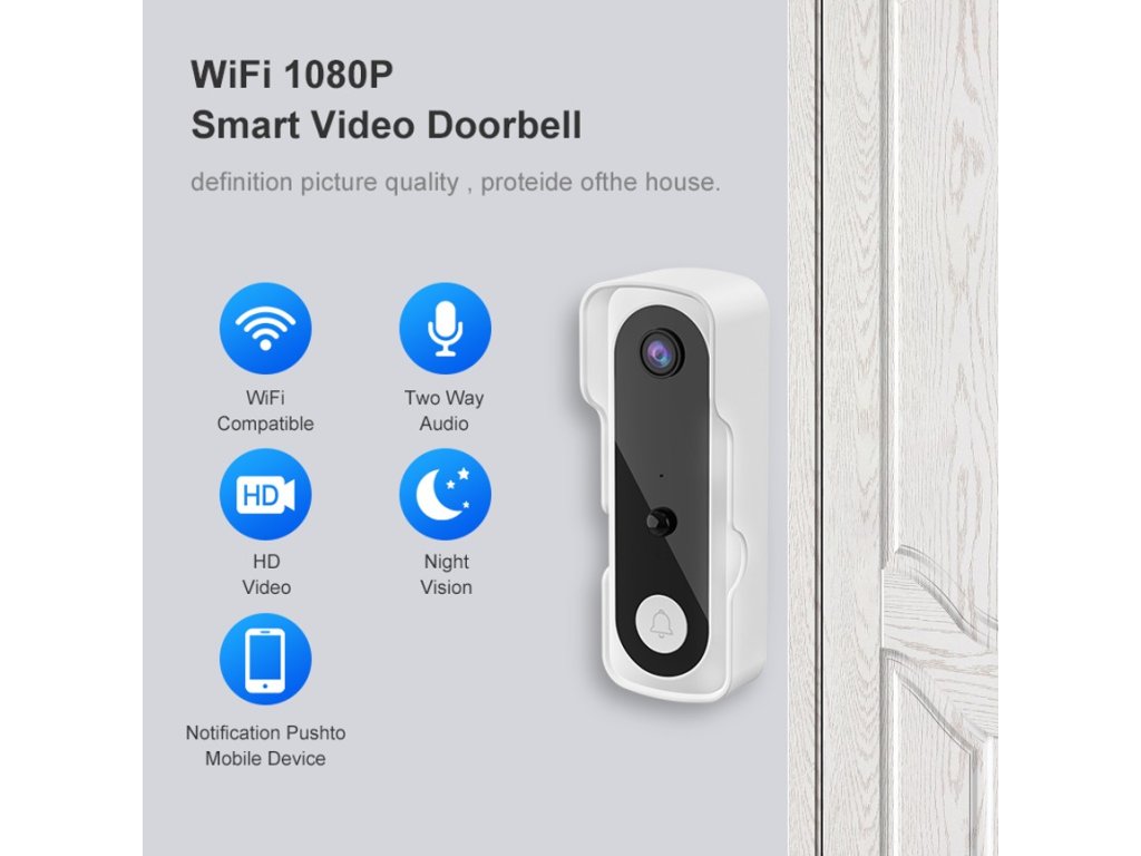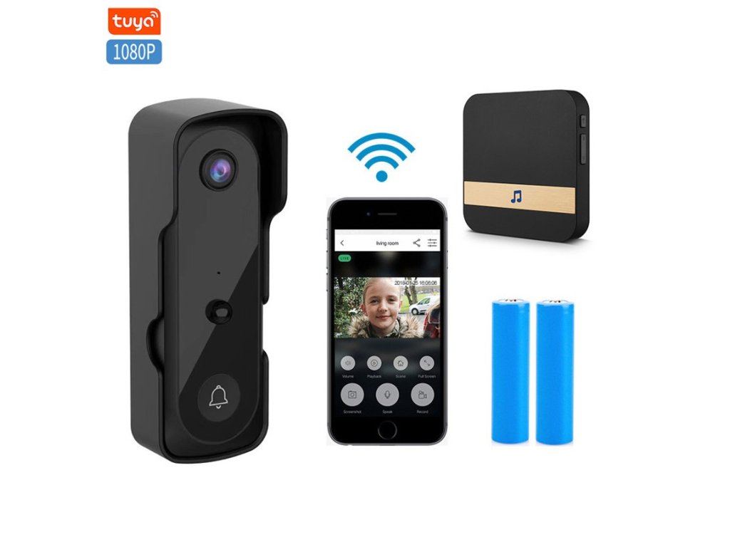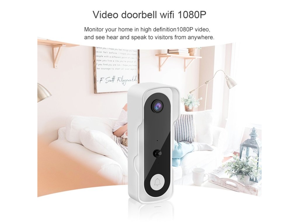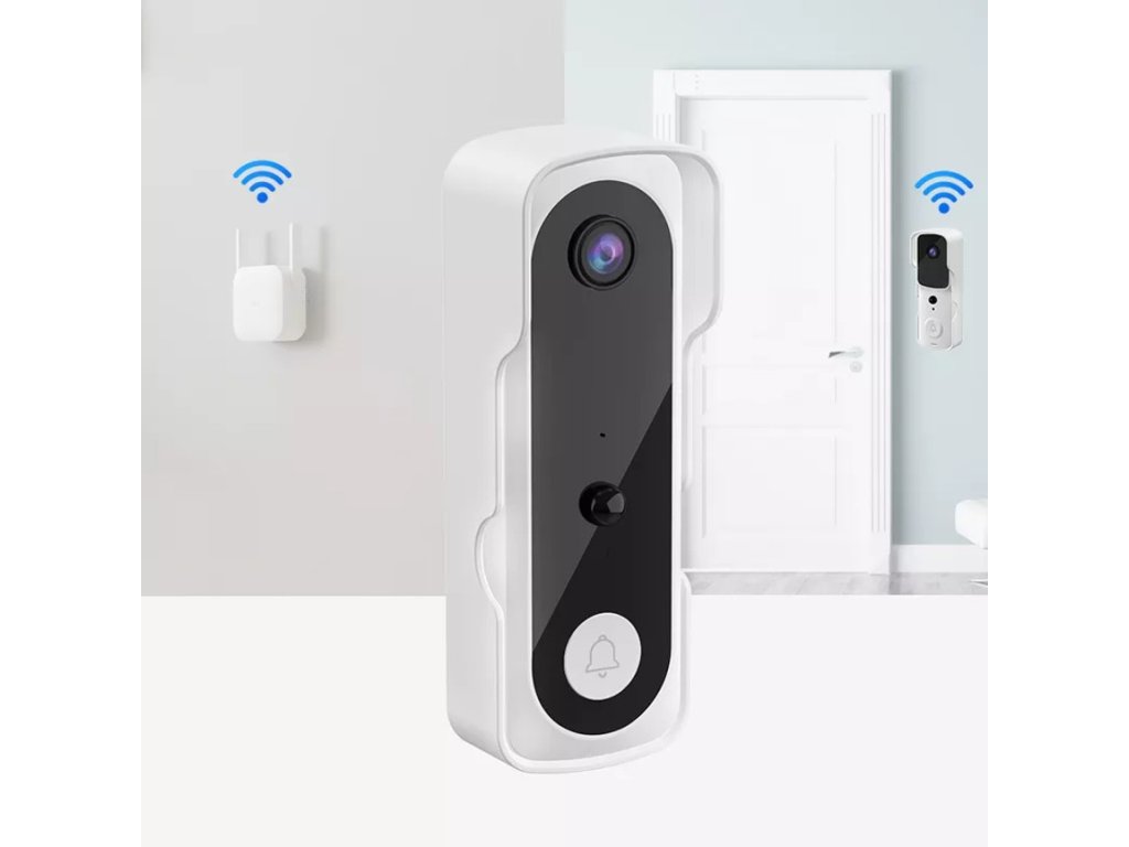 Inteligentný zvonček WiFi s kamerou so záberom 166°, rozlíšenie FullHD 1080p, vonkajšie a vnútorné použitie, obojsmerná diaľková komunikácia, nabíjateľná batéria až na 3 mesiace, detekcia pohybu, upozornenie na telefón, zvuková jednotka pre vnútornú zásuvku, aplikácia Tuya Smart/ Smart Life, biela